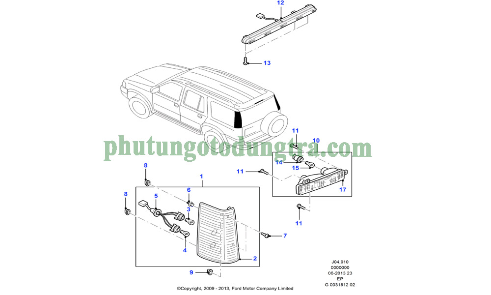 Đèn lái Ford Everest hay còn gọi là đèn hậu Everes là một sản phẩm có mã ( 1-2 trên sơ đồ kĩ thuật ) .Đèn Everes cấu tạo bóng halogen, được lắp ráp vị trí ở phía sau bên trái hoặc bên phải xe, có công dụng báo tín hiệu cho xe sau biết khi tài xế xe bật điều khiển công tắc.