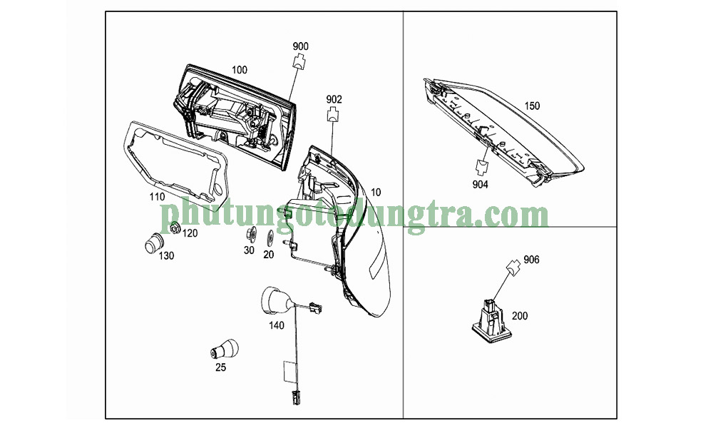 2.Cấu tạo: Đèn lái ngoài Mercedes-Benz GLC bao gồm vỏ đèn, bóng đèn và dãy đèn led được điều khiển bằng hộp tự động trên đèn.( mã sản phẩm 10 trên sơ đồ kĩ thuật ).